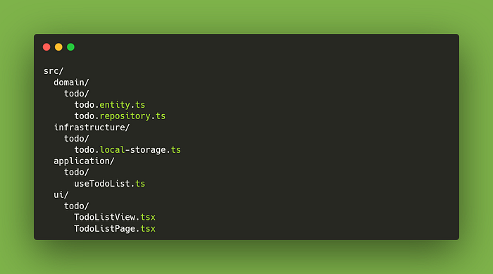 todobir feature’dır; domain, application ve infrastructure içinde kendi alanı vardır.ui/todoaltında da bu feature’a ait component’leri tutabiliriz.