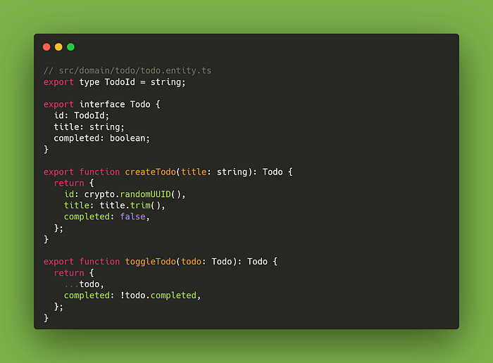 Bir sonraki adımda, bu prensipleri somutlaştırmak için todo domain’ini konuşup, ardından basit bir örnek üzerinden gideceğiz.