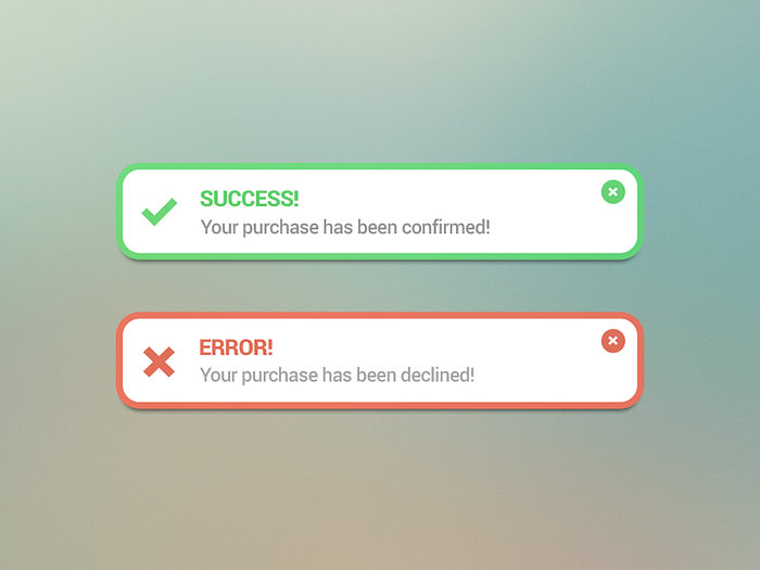 En sık gördüğümüz mikro etkileşimlerden biri. Bir işlemin başarıyla tamamlandığını göstermek için yeşil bir tik simgesi kullanmak, kullanıcıya “Harika, işin tamam!” der. Bu ikonlar, genellikle formlar, ödeme işlemleri ya da kayıt süreçlerinde kullanılır. Amaç, kullanıcıya her şeyin yolunda olduğunu anında göstermektir. - Uyarılar ve Hatalar (Hata İkonları):